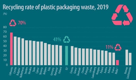 The packaging plastics recycling rates have increased significantly over the past decade according to the OCDE, as the following graph shows: